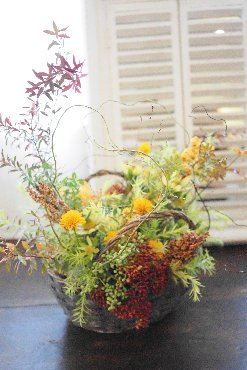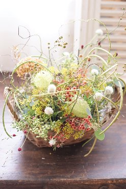 スタジオ内にある器、花(¥5,500以内)を自分で選んでいただき、テーマを決め、アレンジしていただくコース。