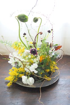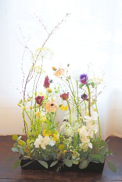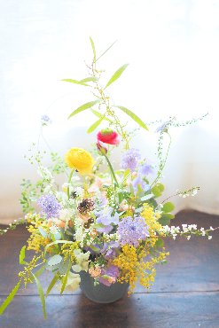 スタジオ内にある器、花(¥5,500以内)を自分で選んでいただき、テーマを決め、アレンジしていただくコース。