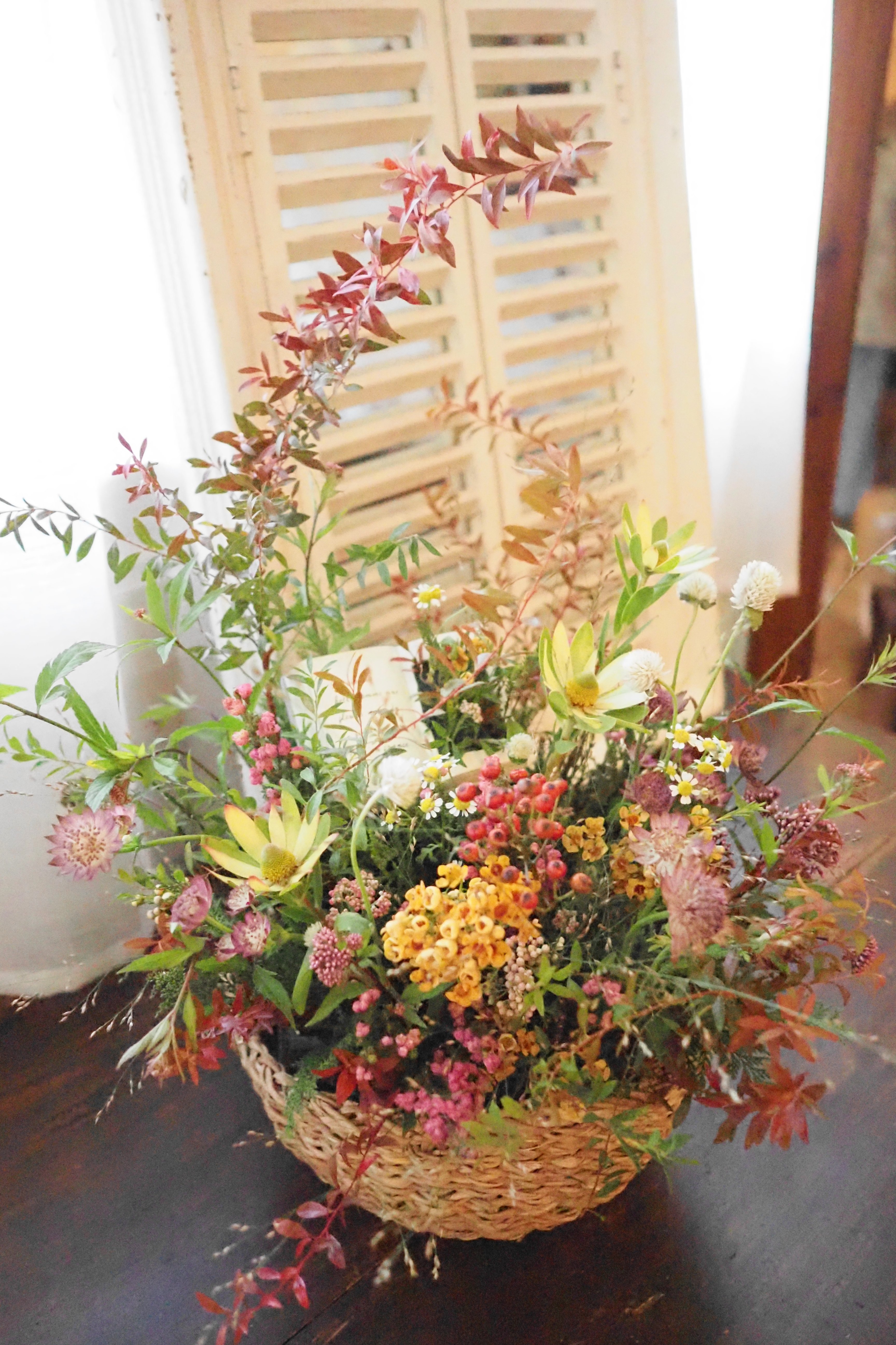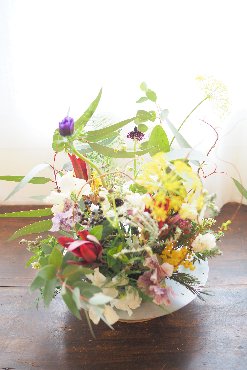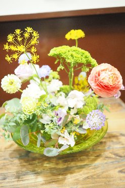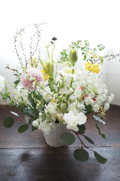 スタジオ内にある器、花(¥5,500以内)を自分で選んでいただき、テーマを決め、アレンジしていただくコース。
